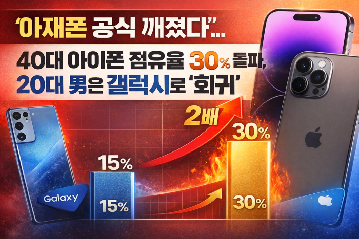 기타정보 "아재폰 공식 깨졌다"... 40대 아이폰 점유율 30% 돌파, 20대 男은 갤럭시로 '회귀'